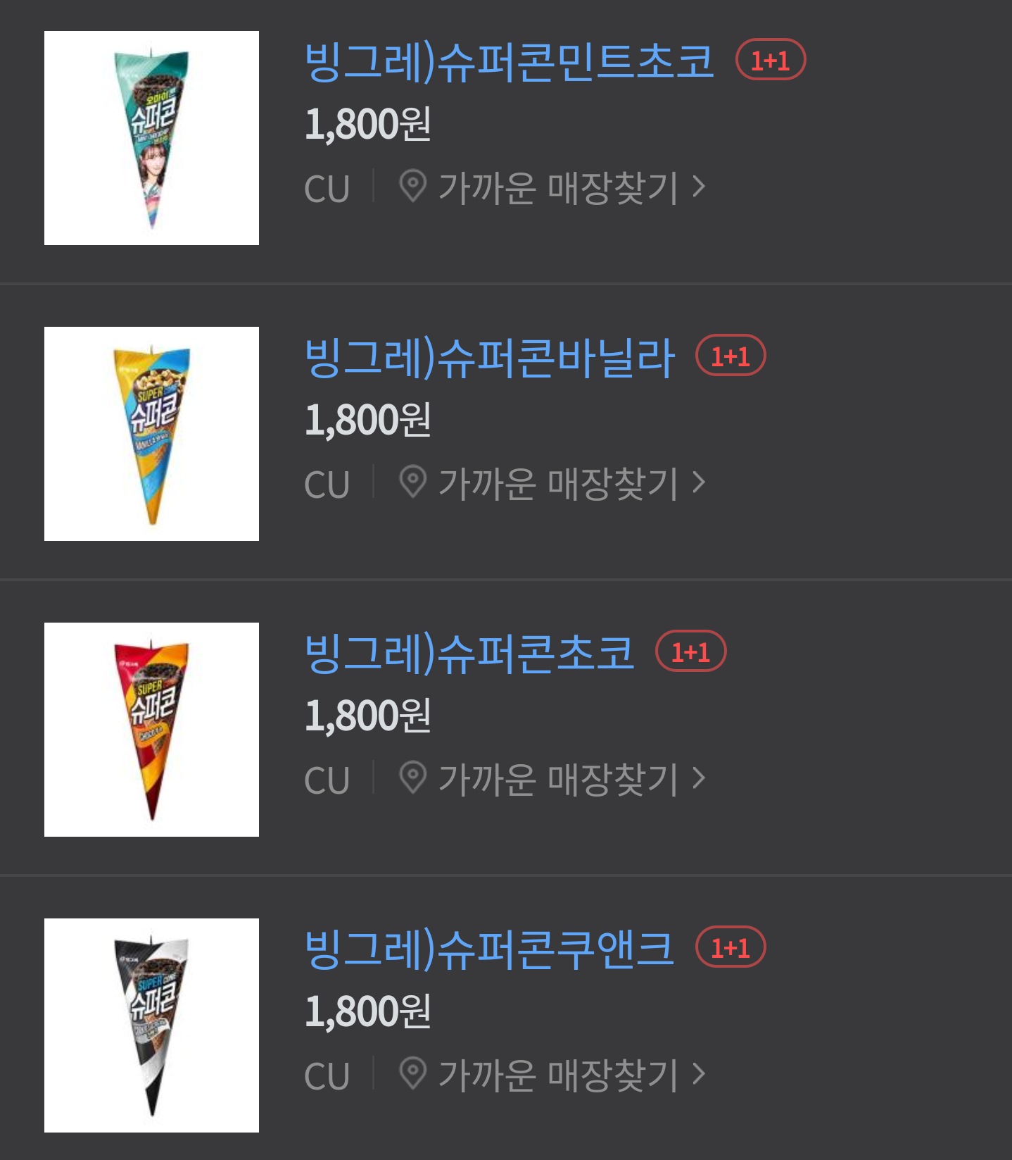 ★슈퍼콘(딸기, 민트초코칩, 비닐라, 초코, 쿠앤크) 1+1 ☞ 맛 일부 겹침