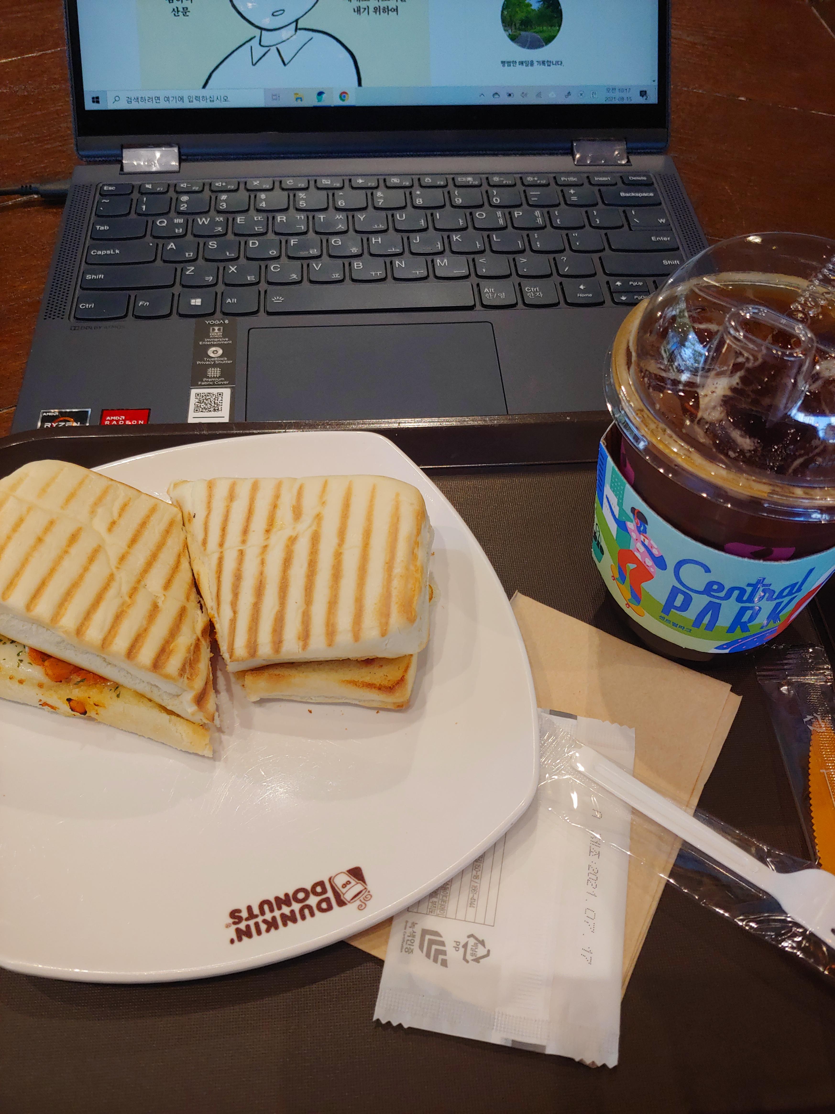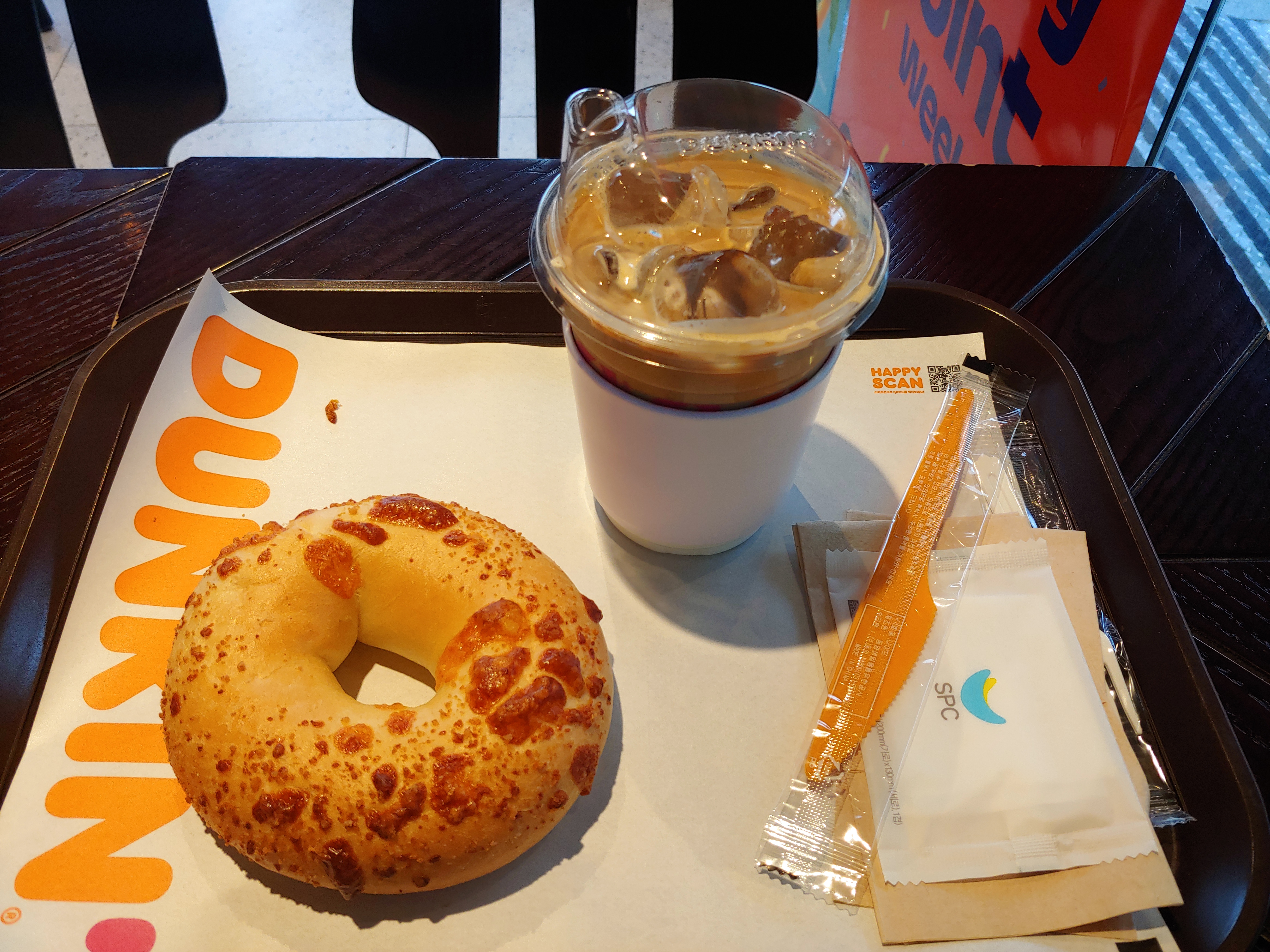 오랜만에 먹었더니 더 맛있음. 던킨은 도넛보다 베이글이 더 맛있는 것 같다.