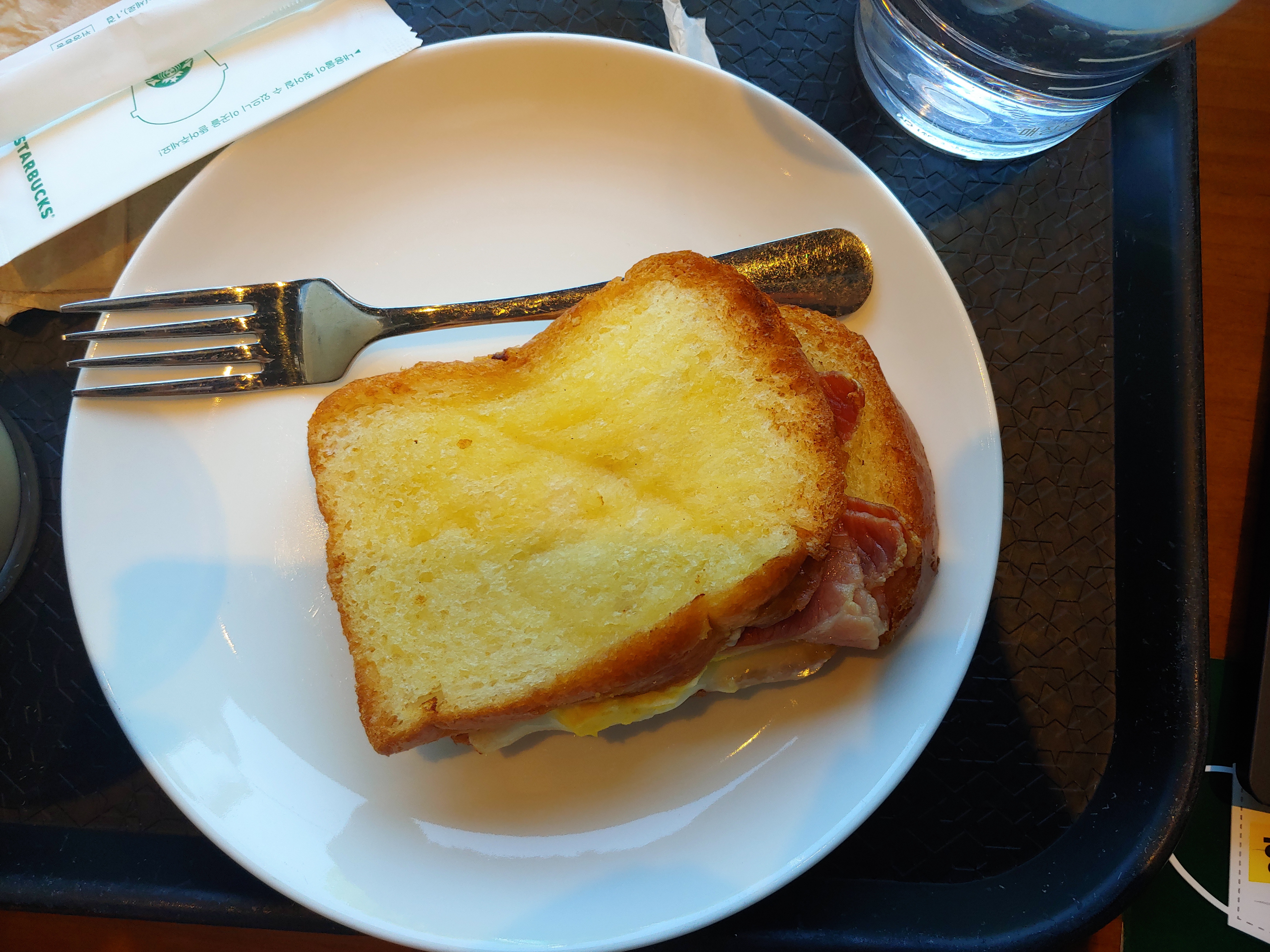 이날은 스타벅스 베이컨치즈토스트 먹었는데, 생각보다 괜춘!