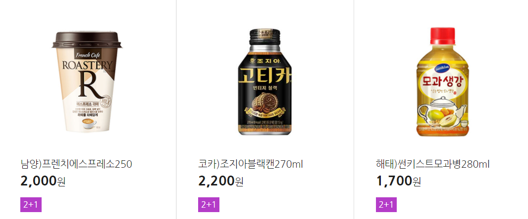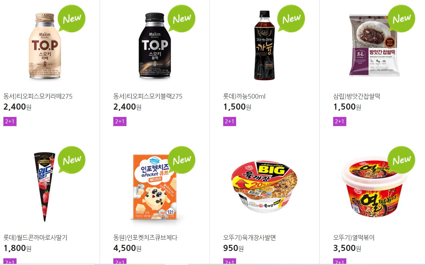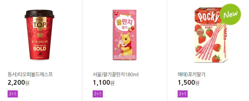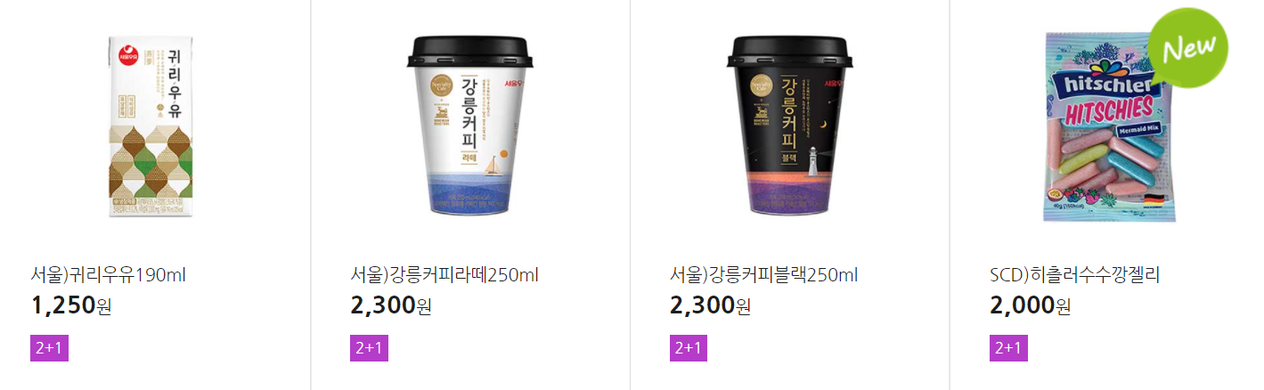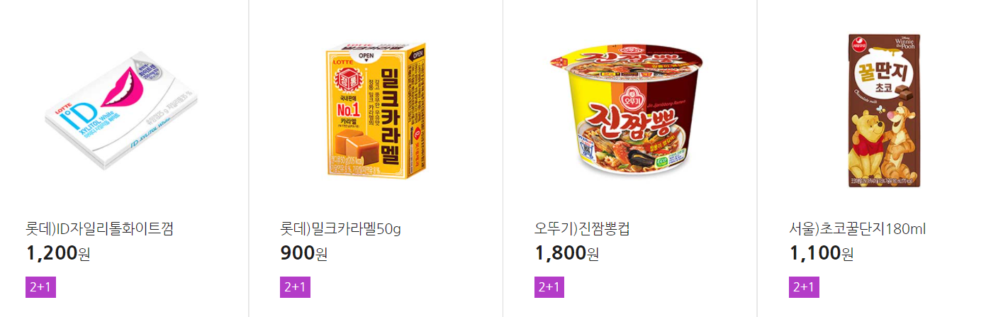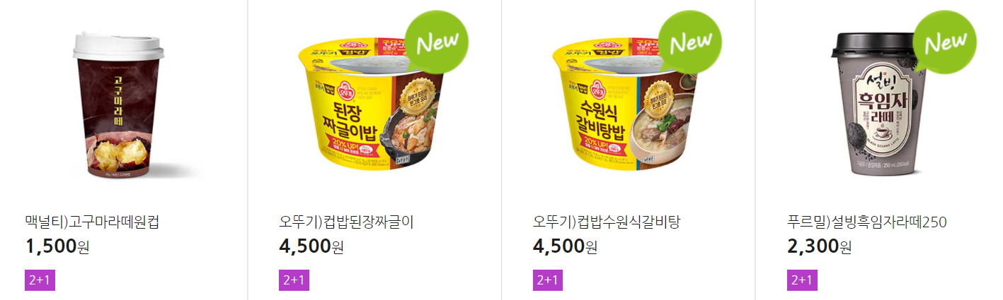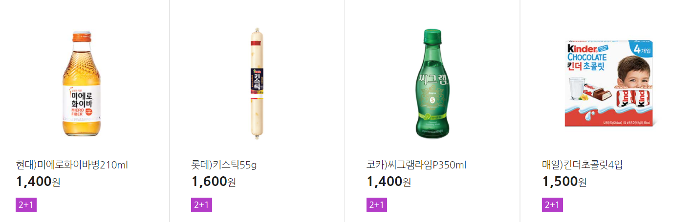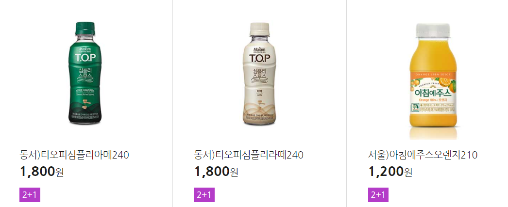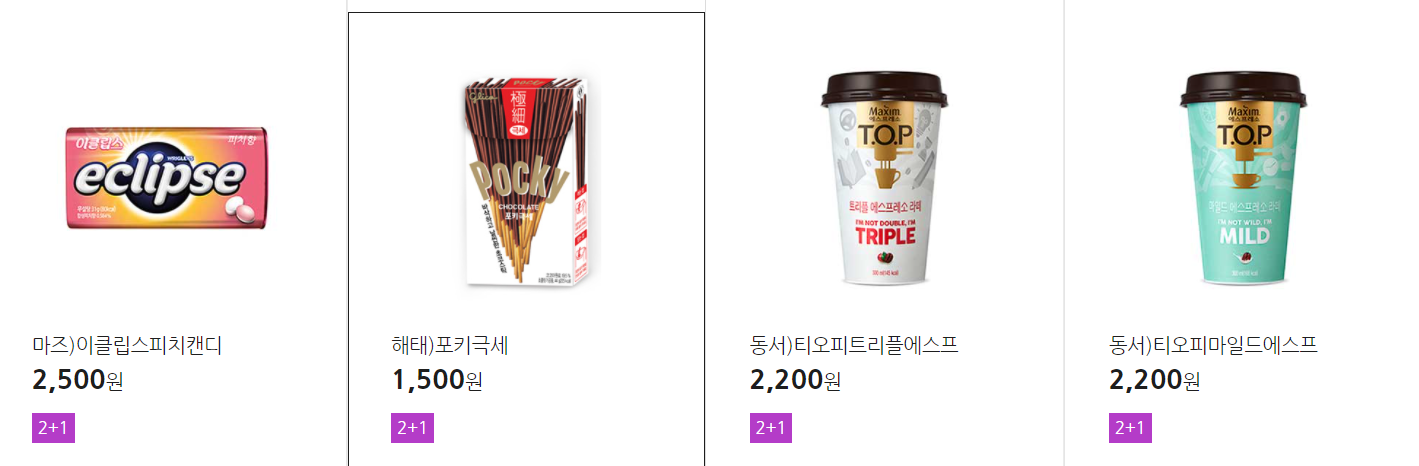 더 많은 2+1 상품(음료, 간식 종류만)은 아래 더보기 클릭