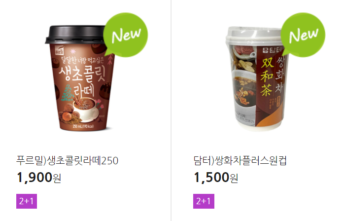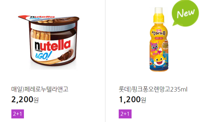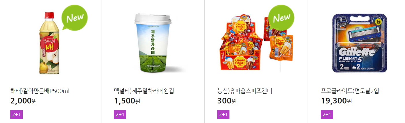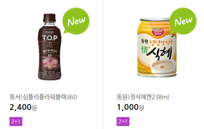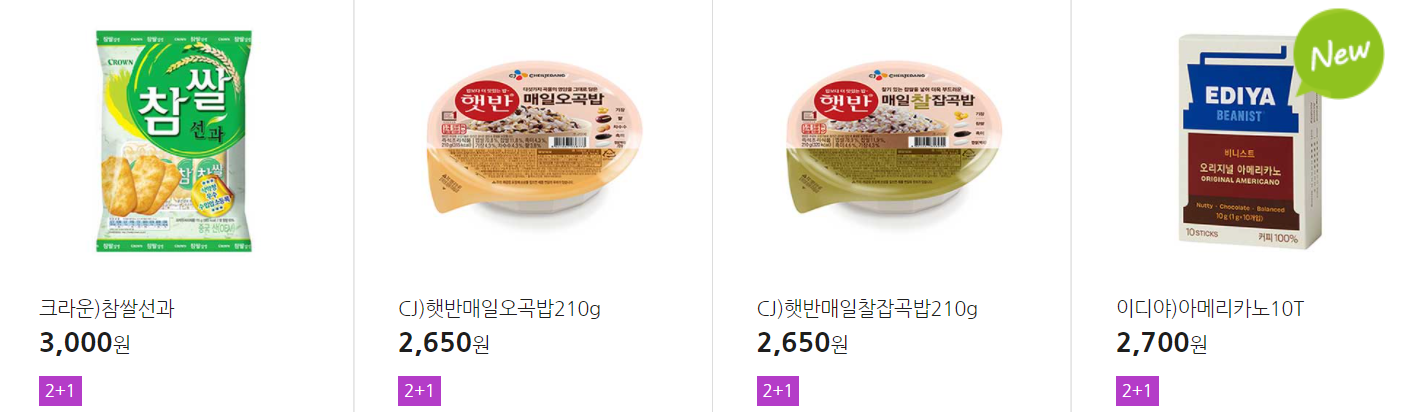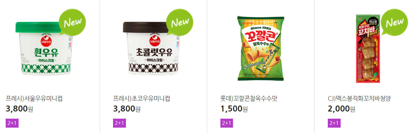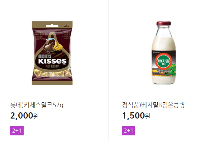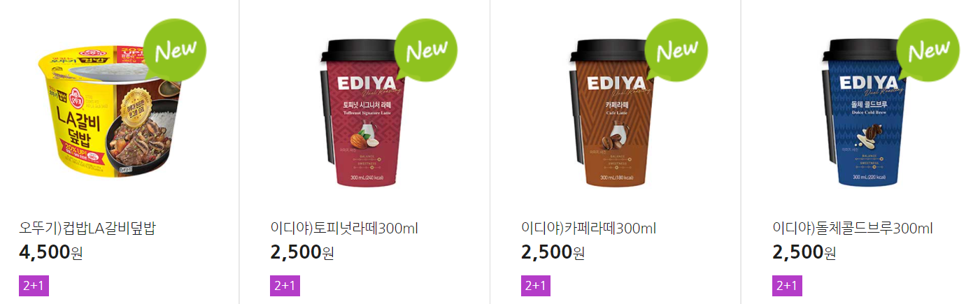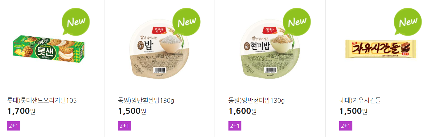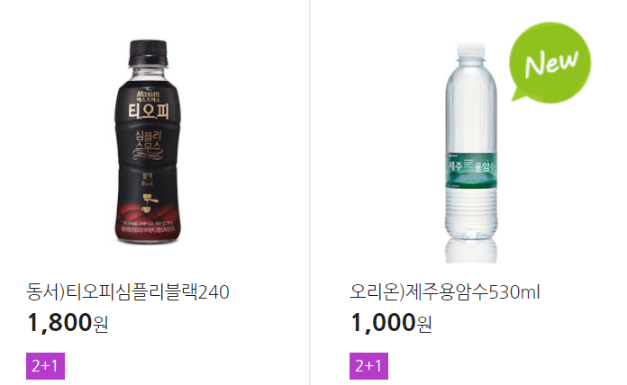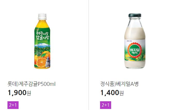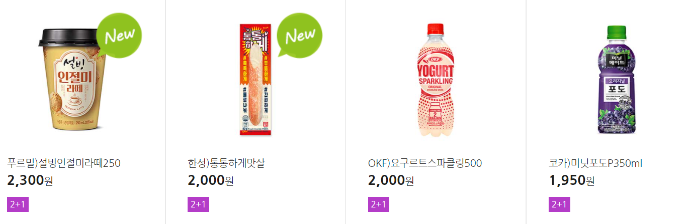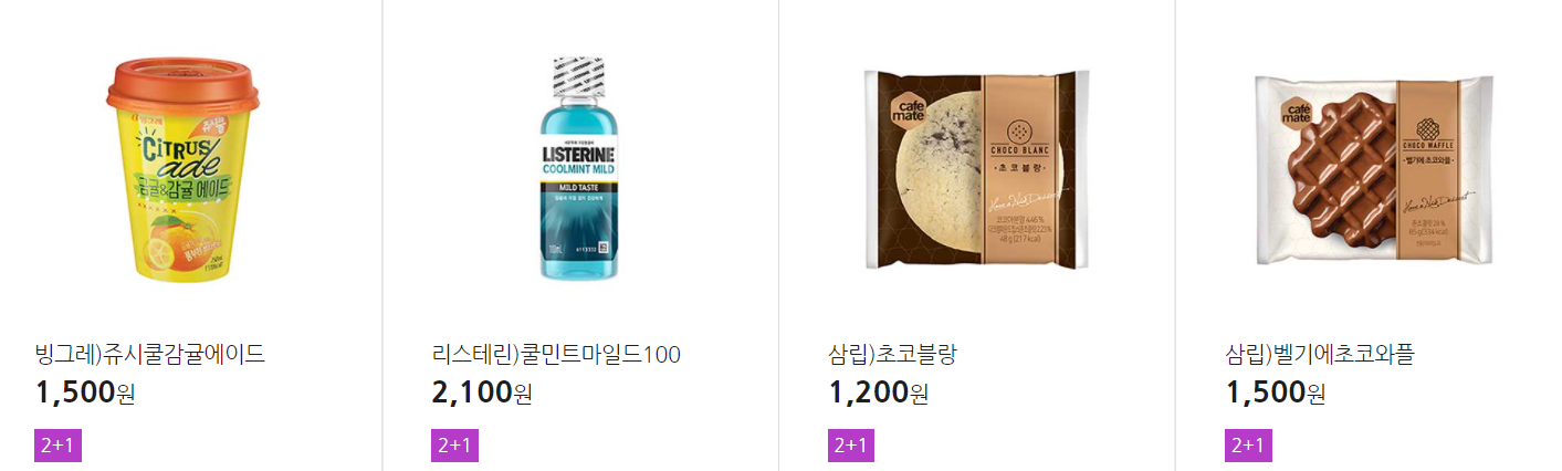 더 많은 2+1 상품(음료, 간식 종류만)은 아래 더보기 클릭