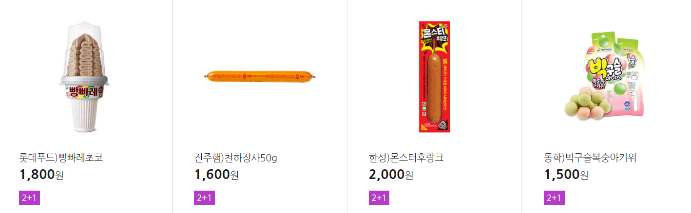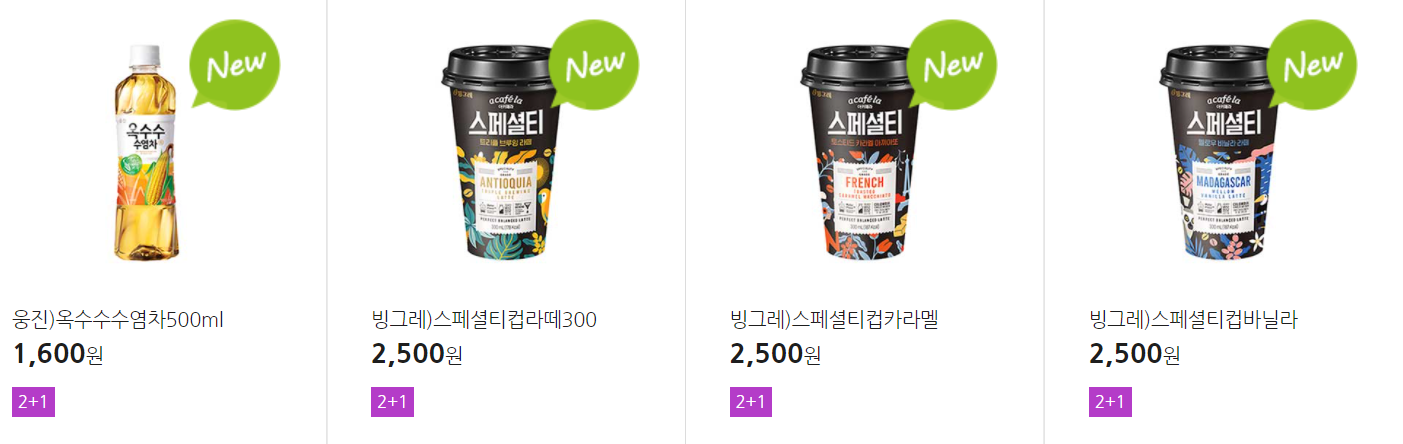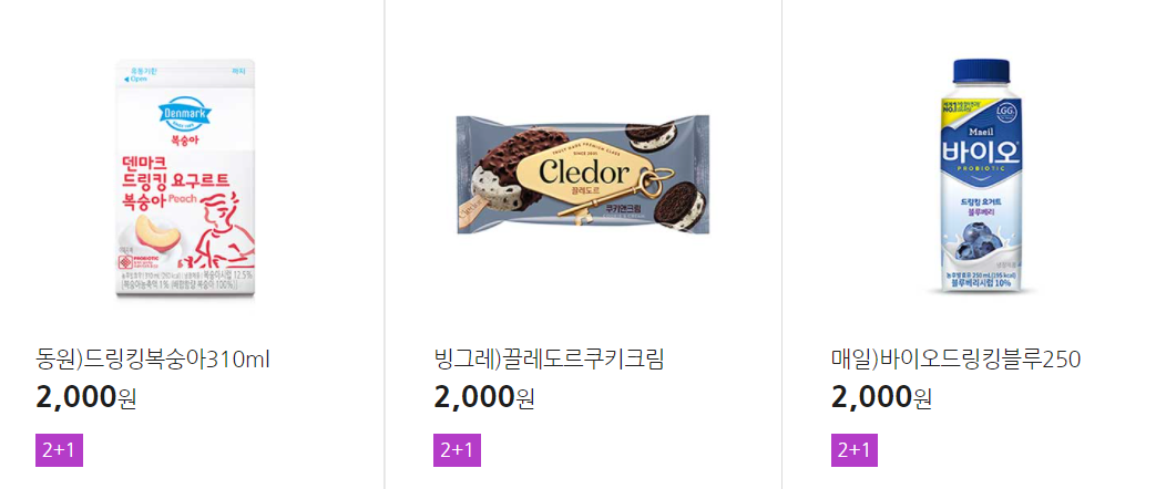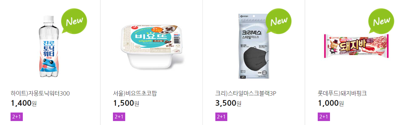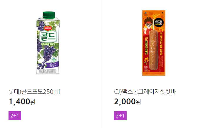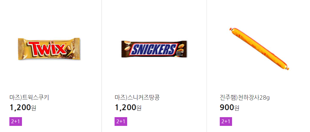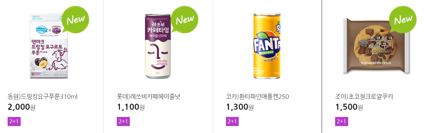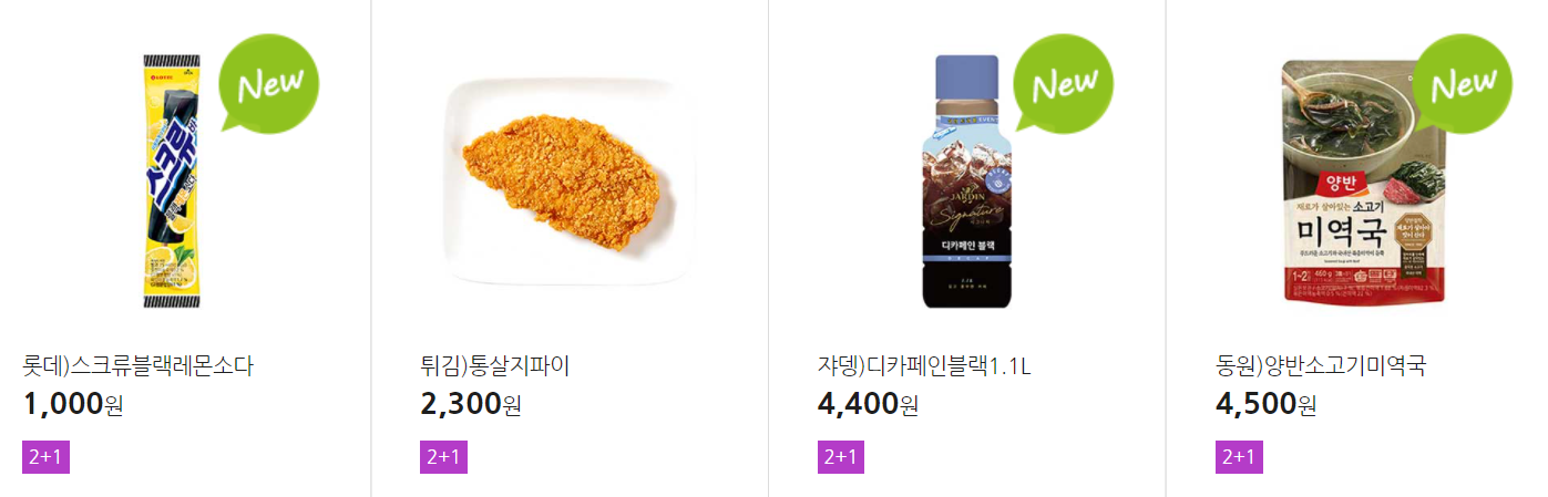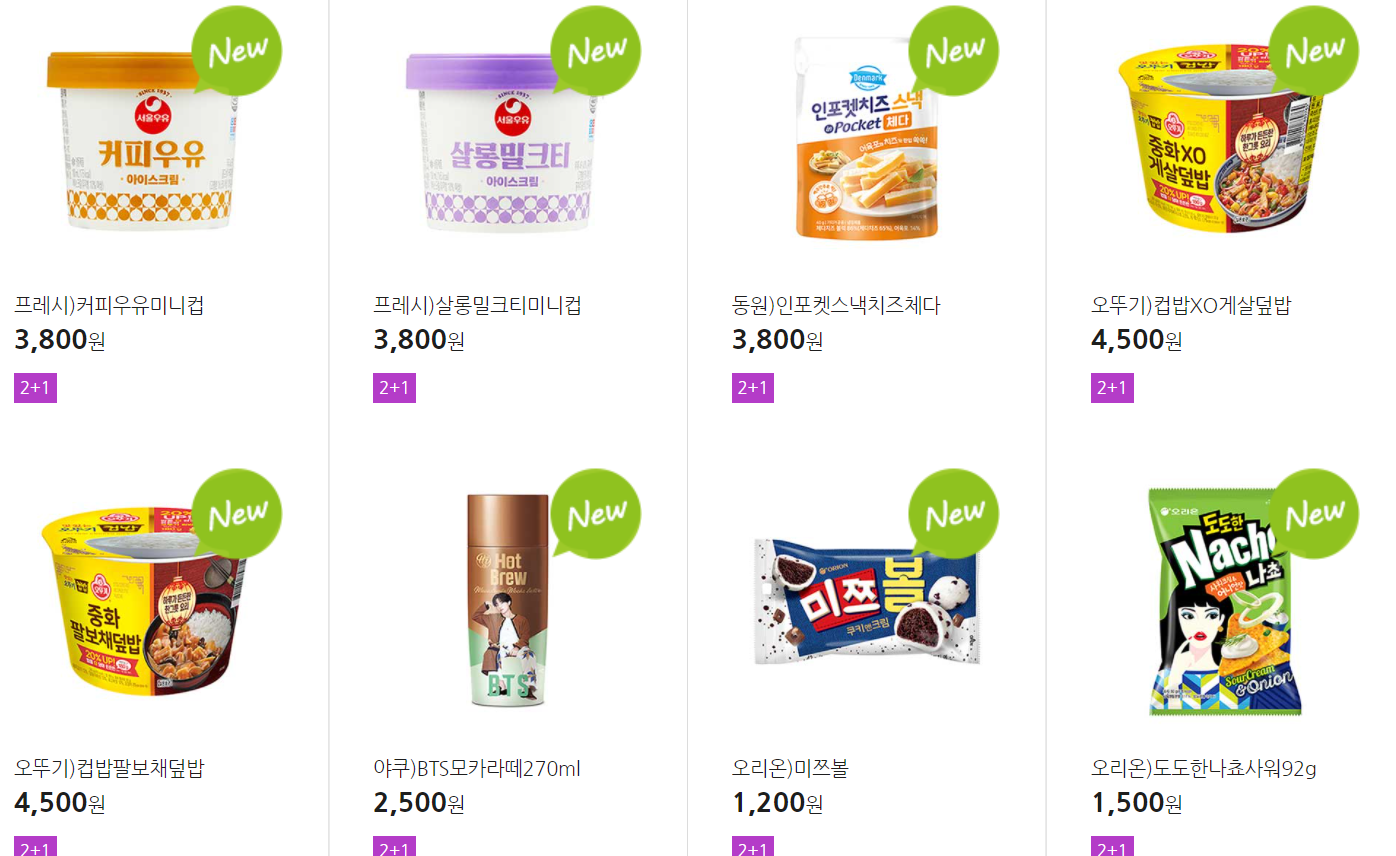 더 많은 2+1 상품(음료, 간식 종류만)은 아래 더보기 클릭
