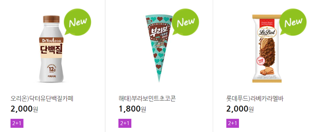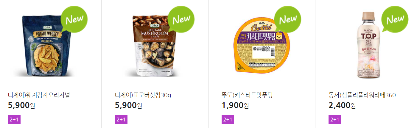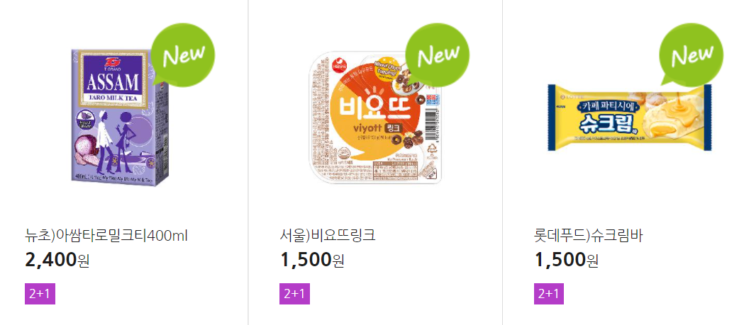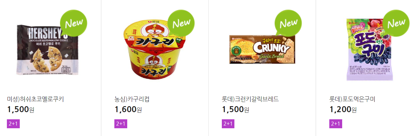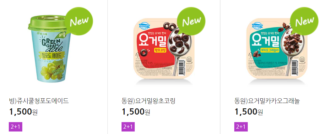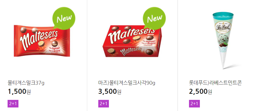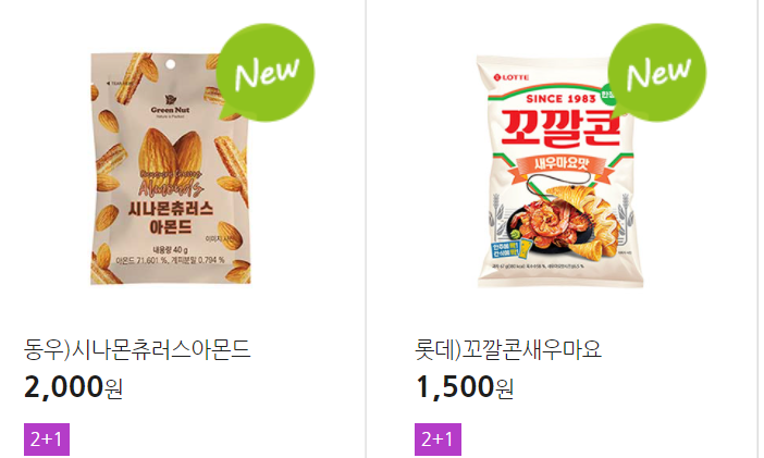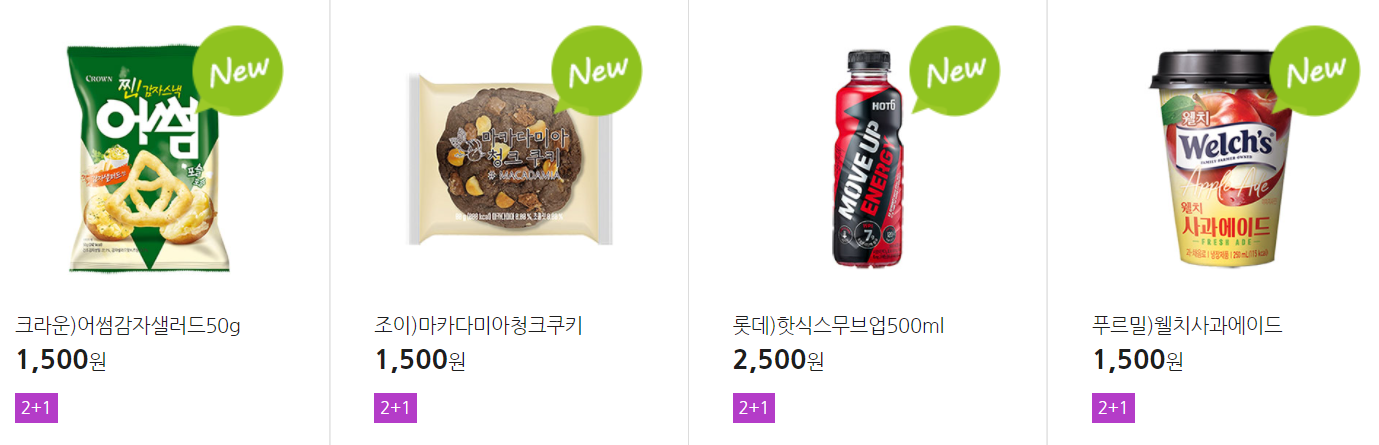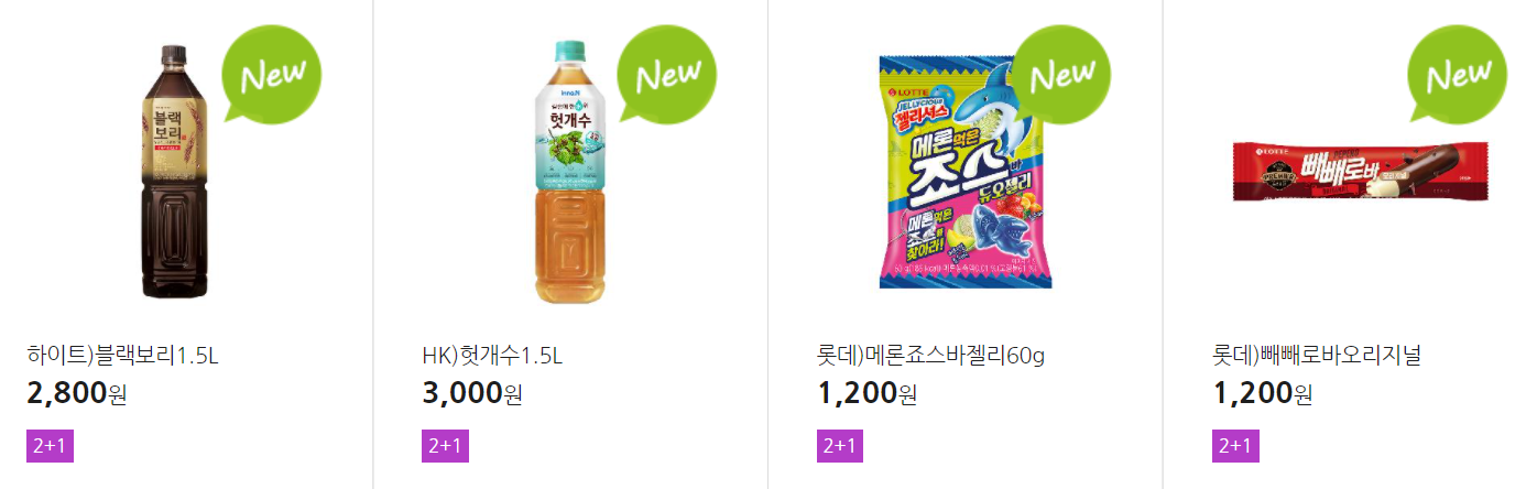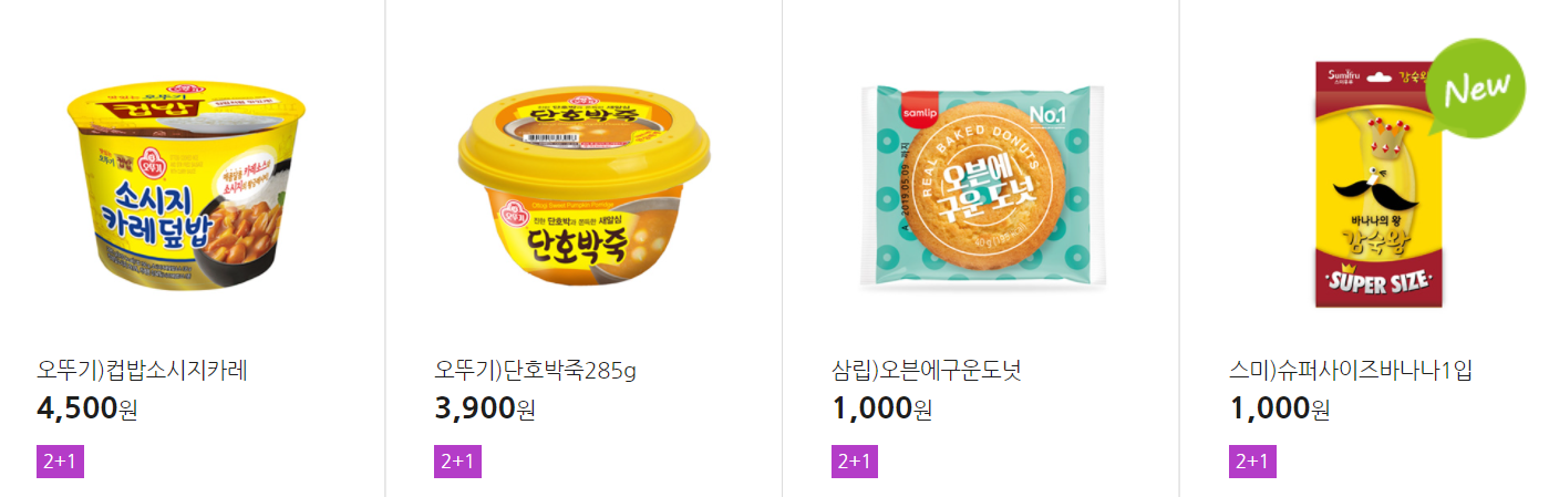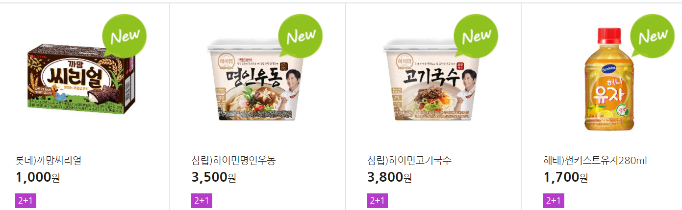 더 많은 2+1 상품(음료, 간식 종류만)은 아래 더보기 클릭