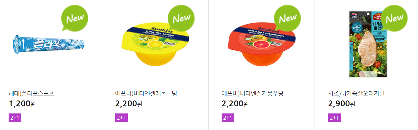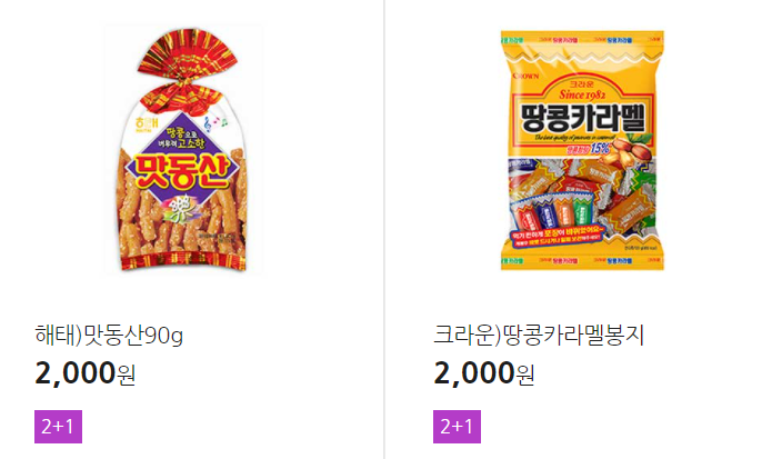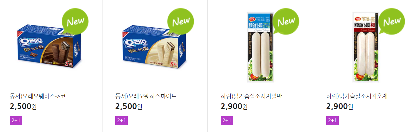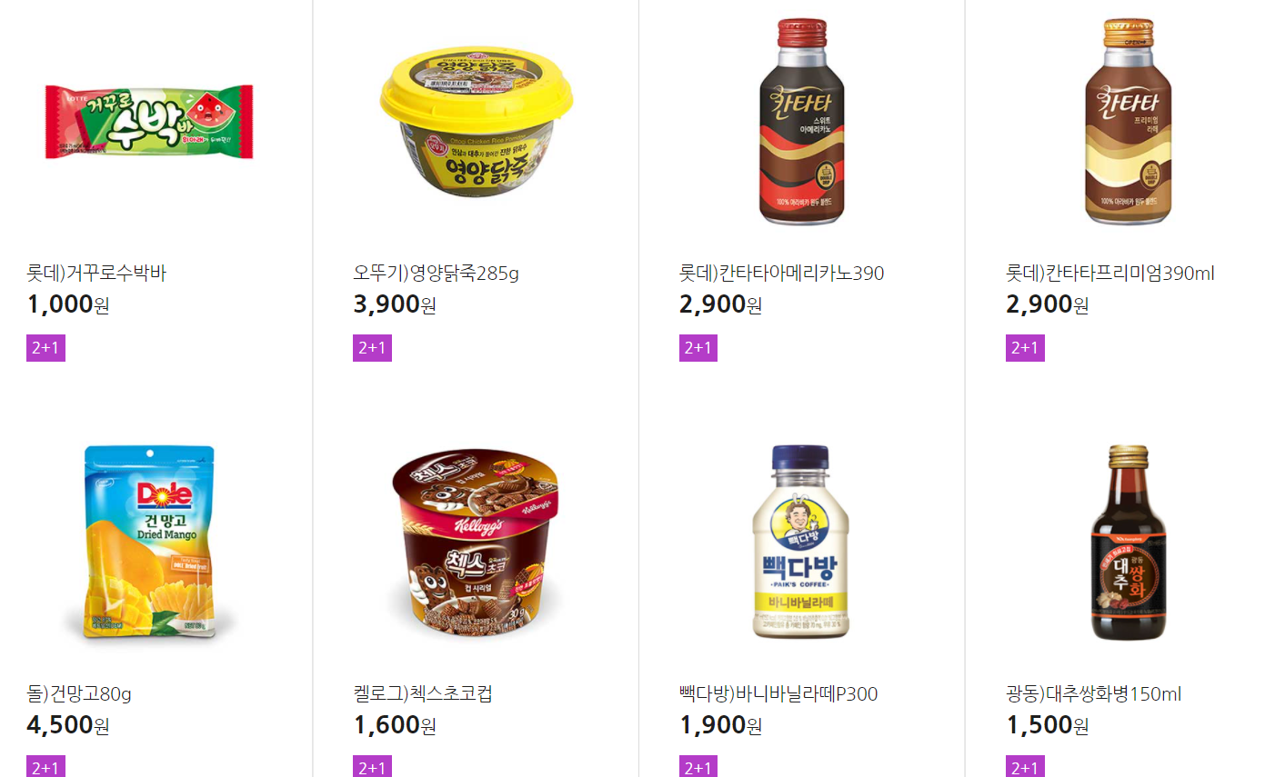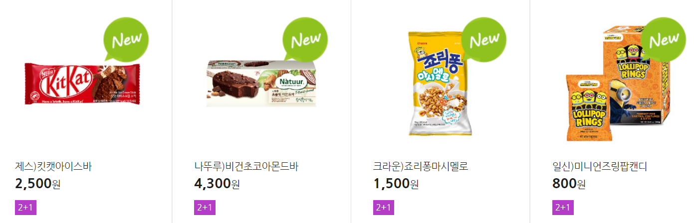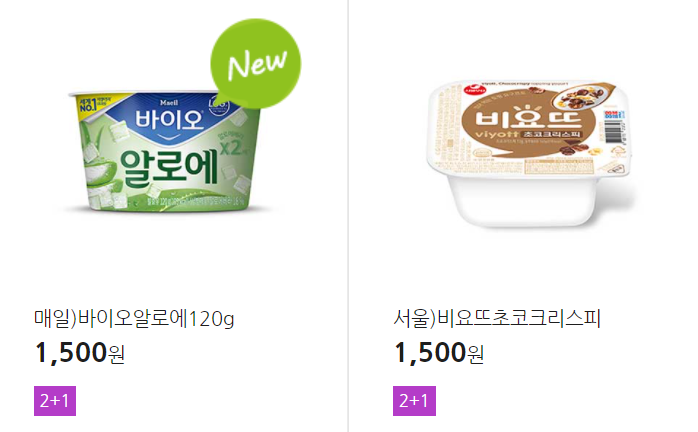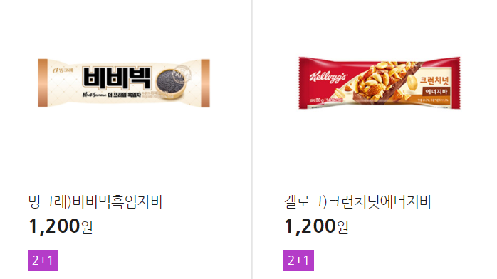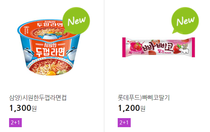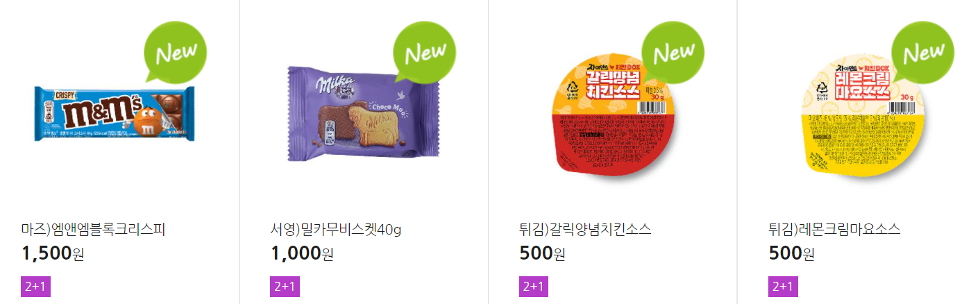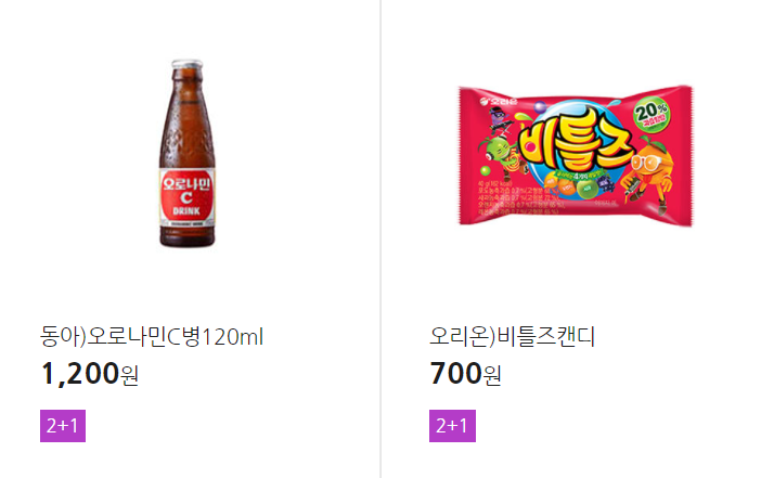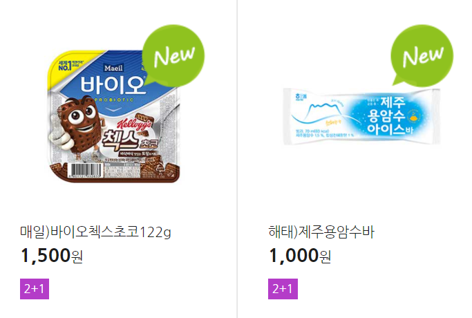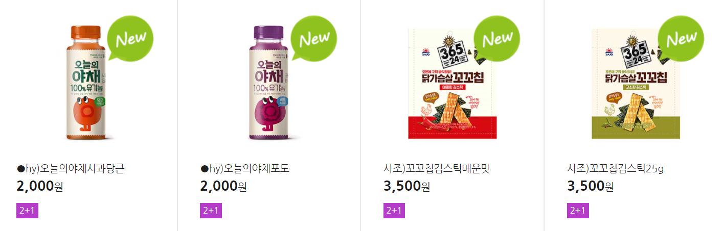 더 많은 2+1 상품(음료, 간식 종류만)은 아래 더보기 클릭