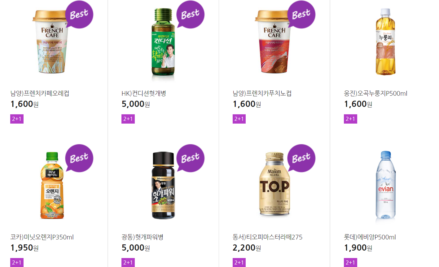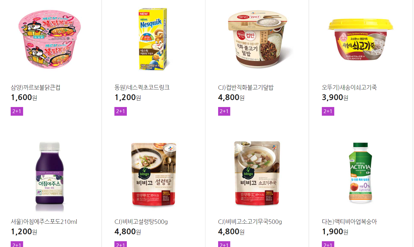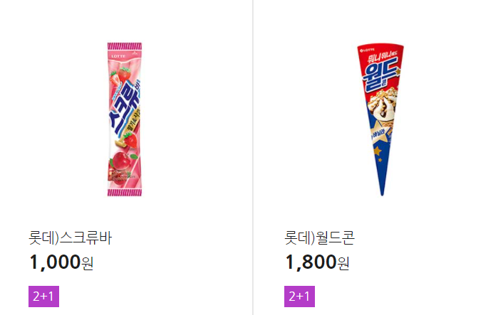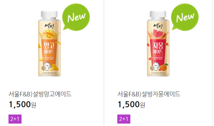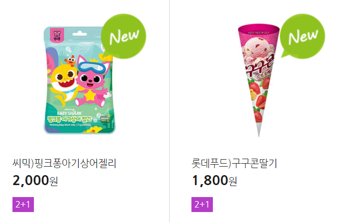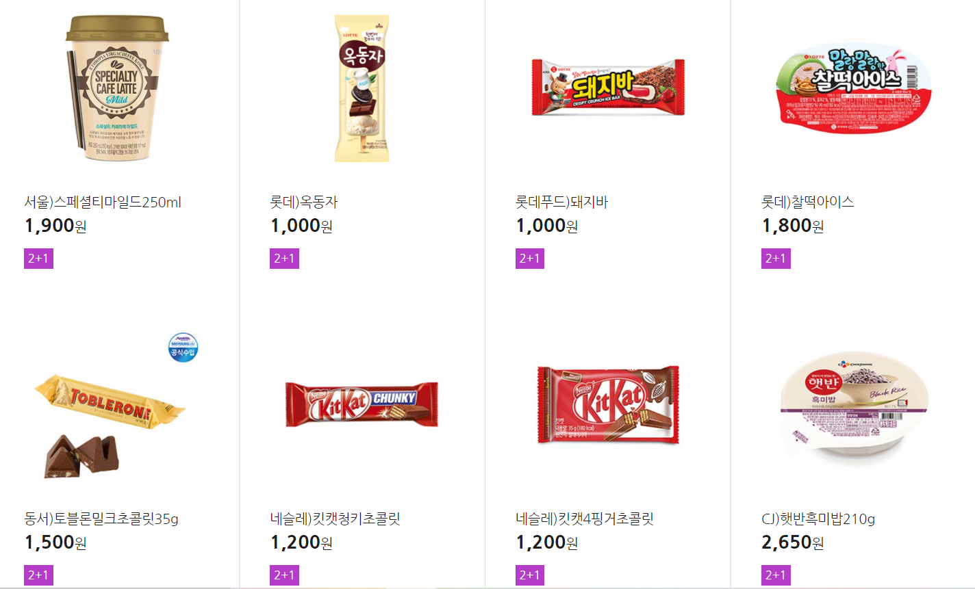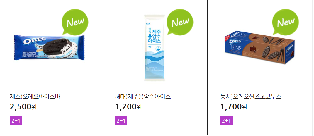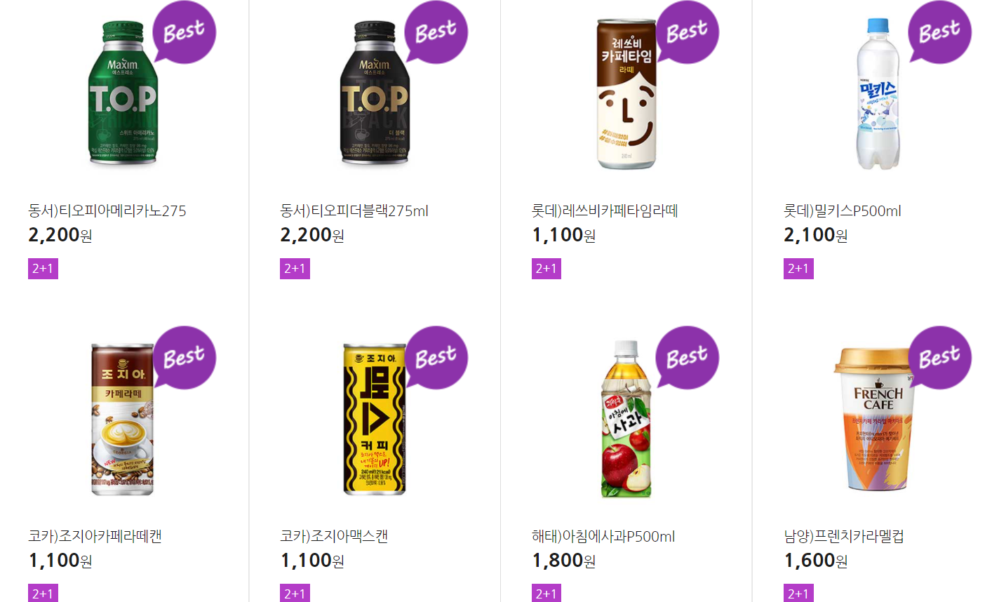 더 많은 2+1 상품(음료, 간식 종류만)은 아래 더보기 클릭