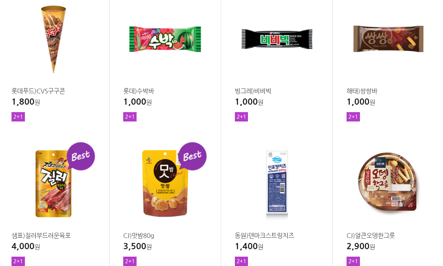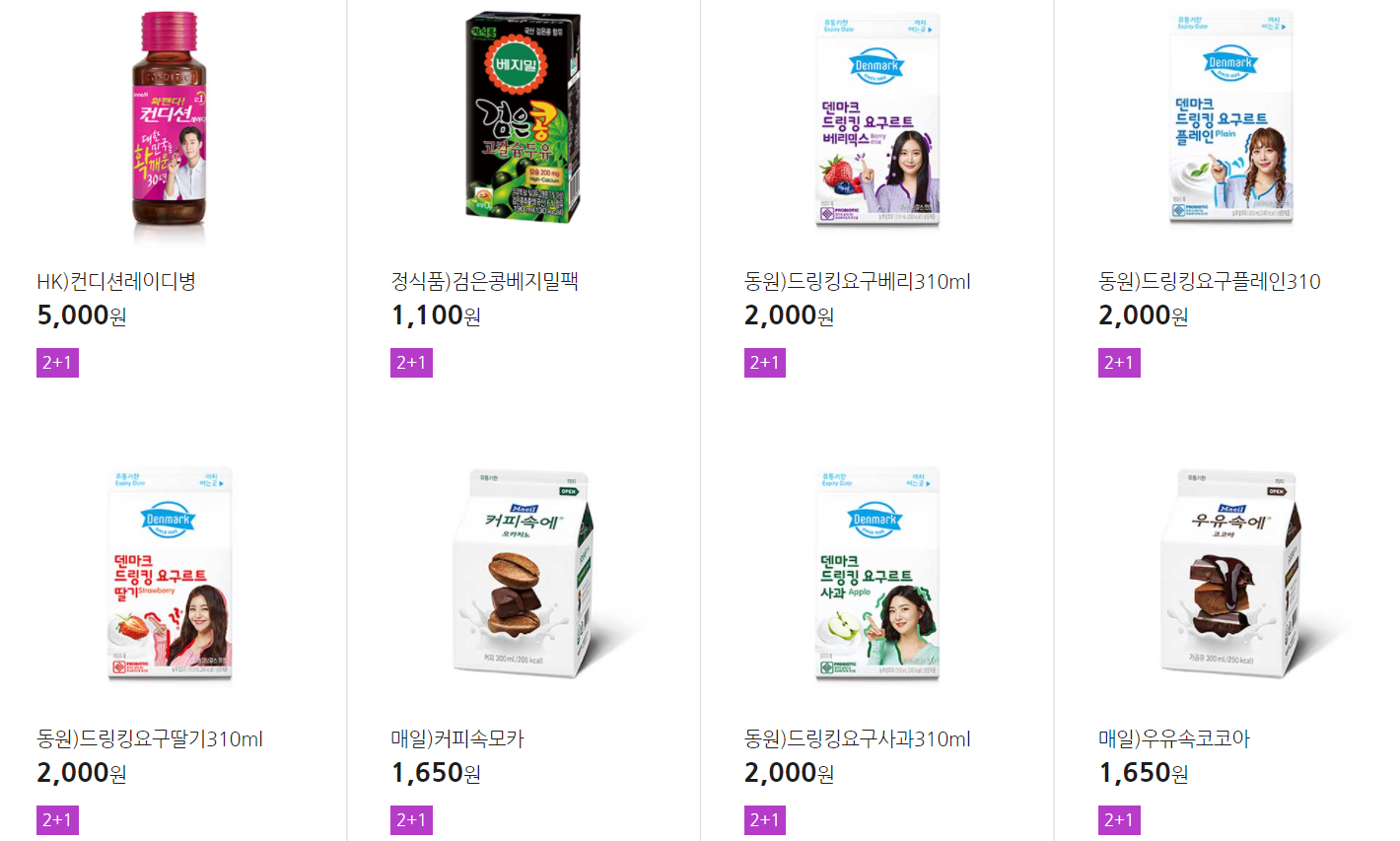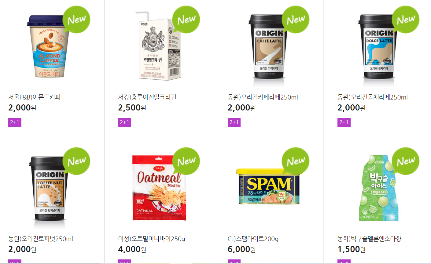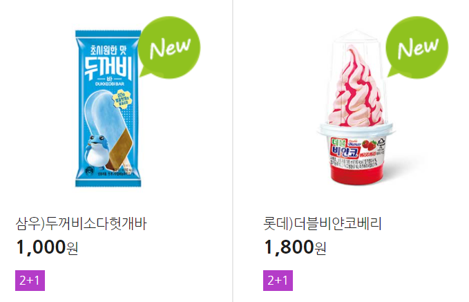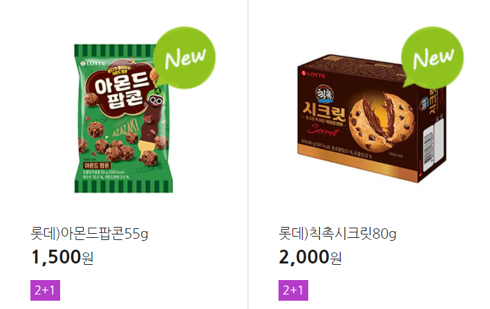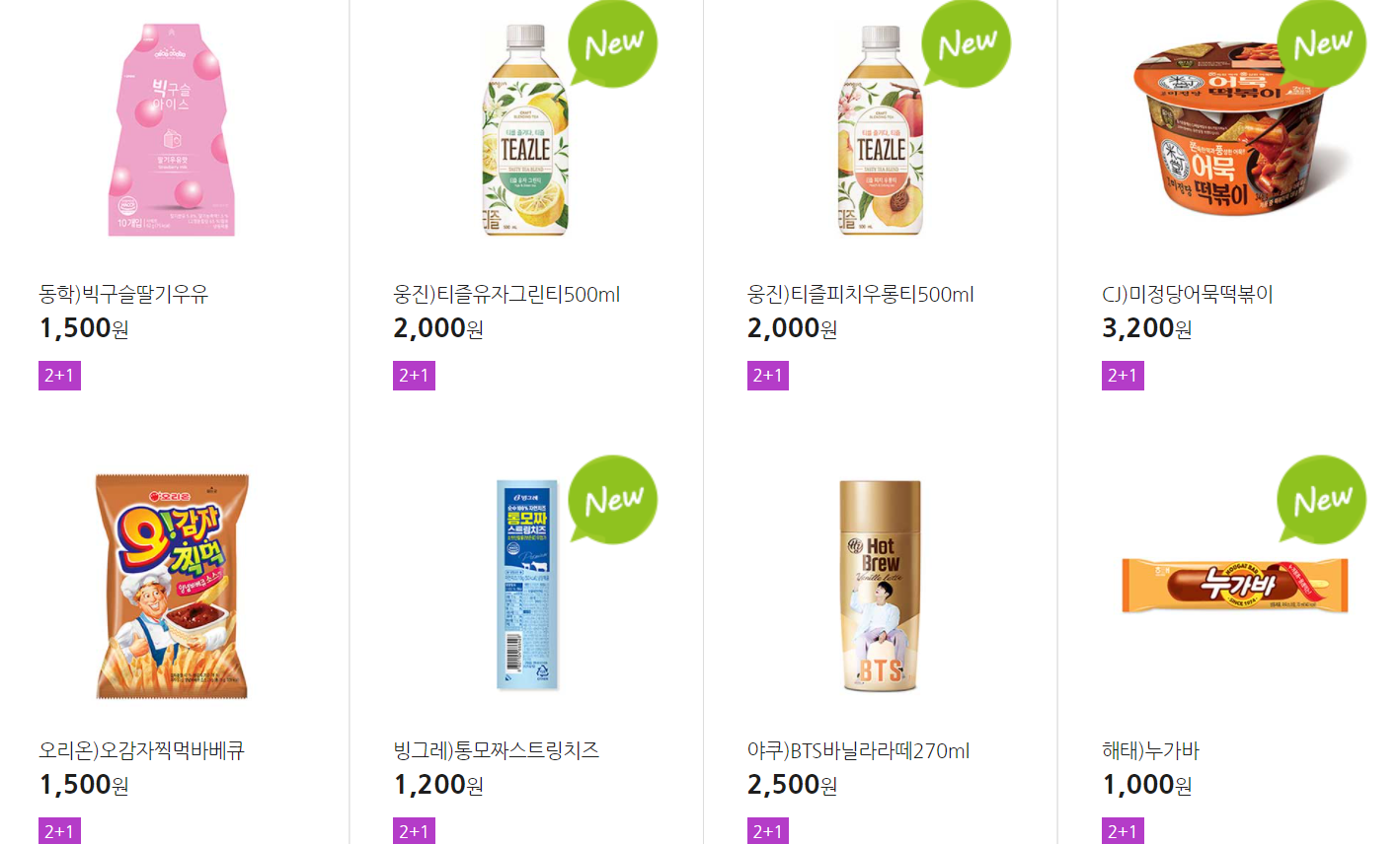 더 많은 2+1 상품(음료, 간식 종류만)은 아래 더보기 클릭