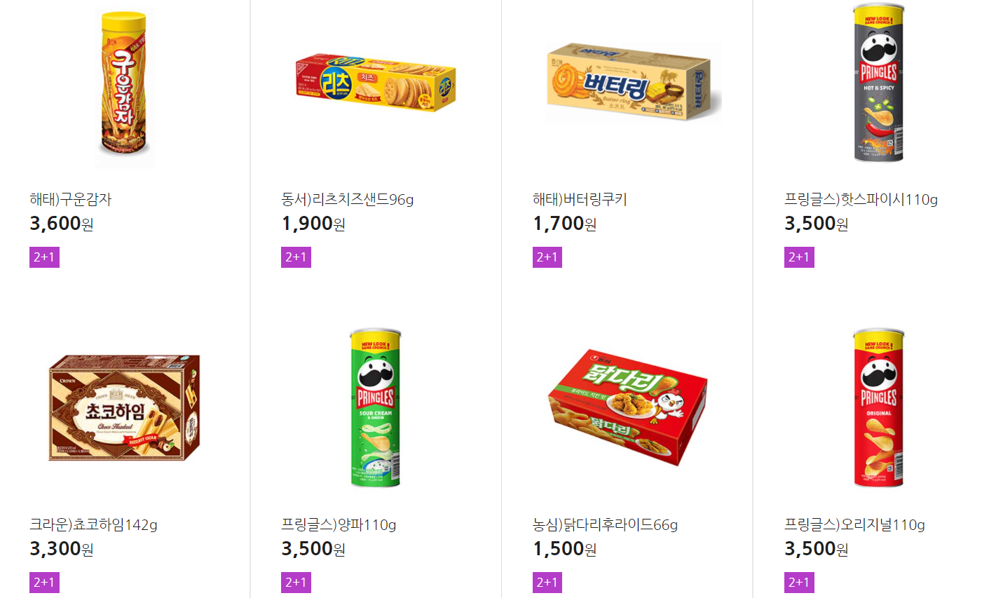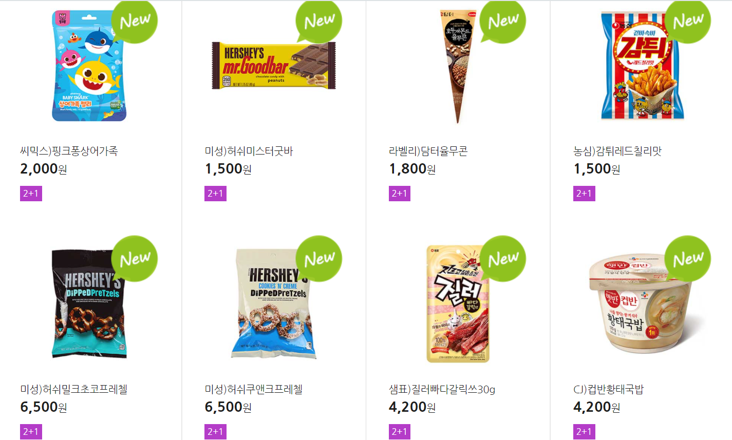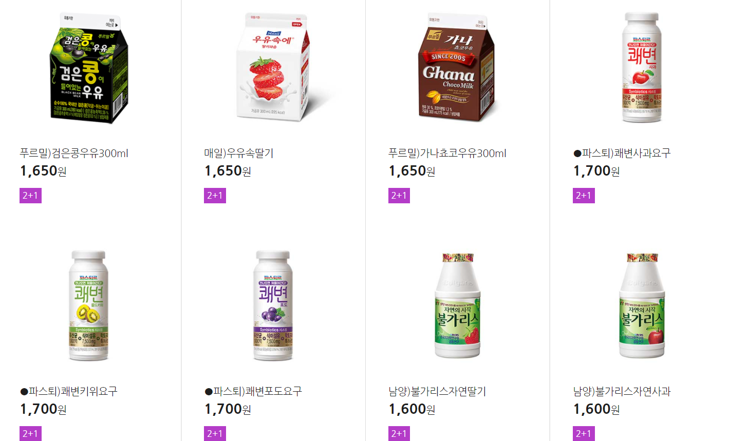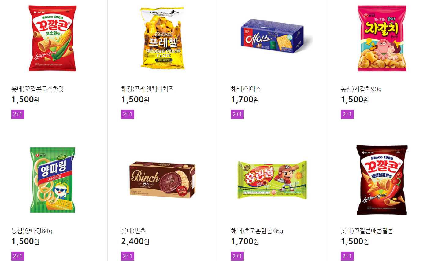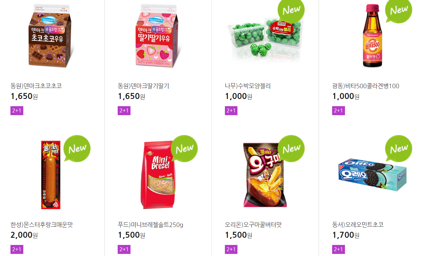 더 많은 2+1 상품(음료, 간식 종류만)은 아래 더보기 클릭
