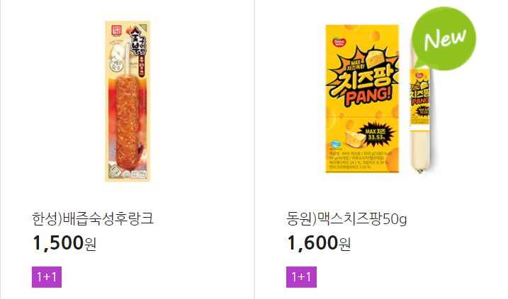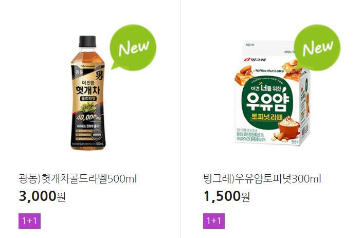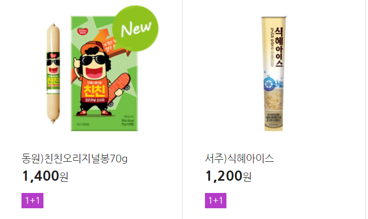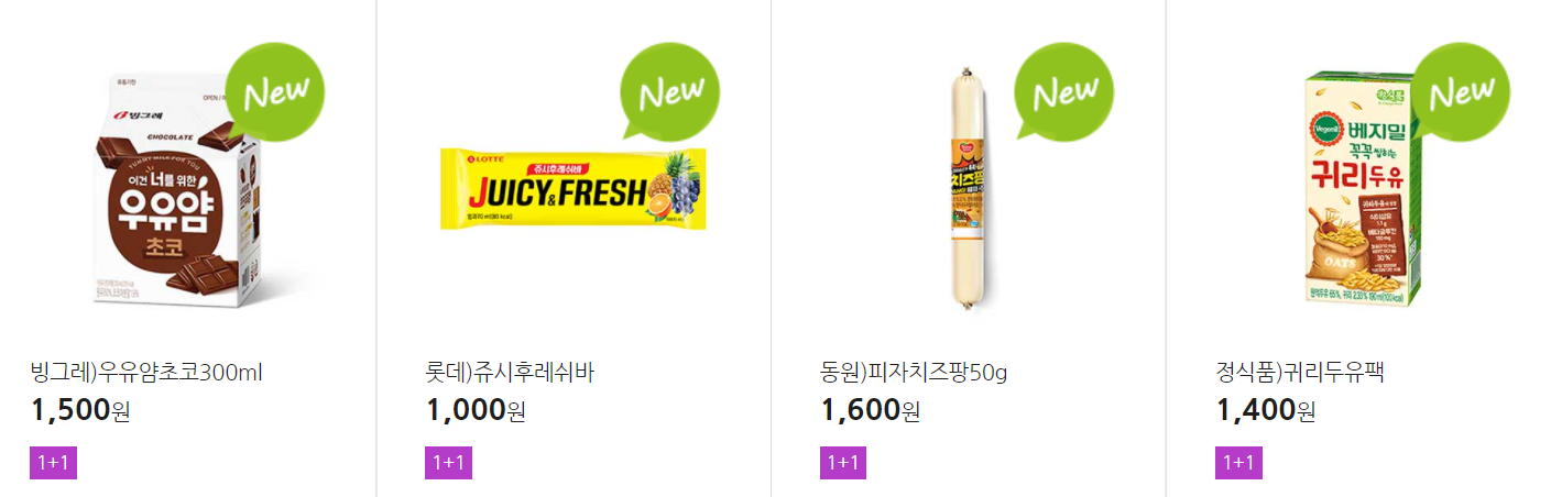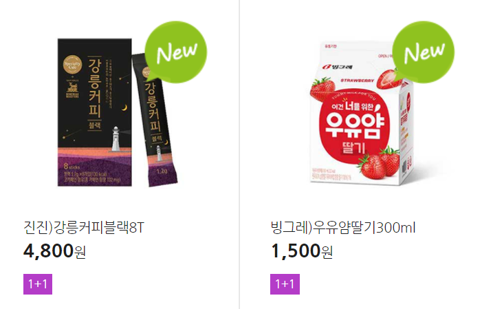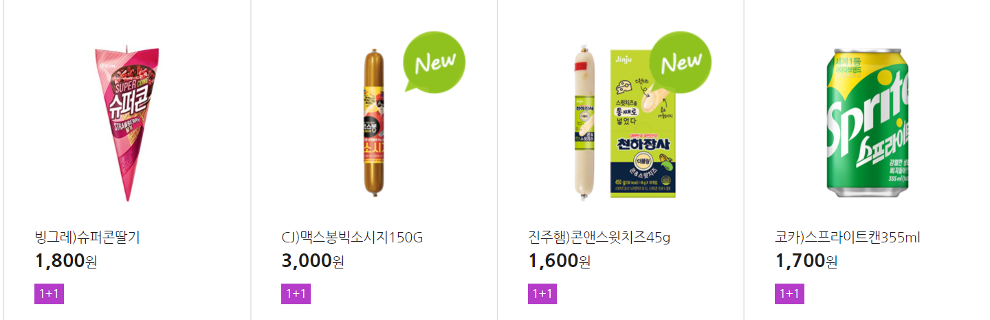 더 많은 1+1 상품(음료, 간식 종류만)은 아래 더보기 클릭