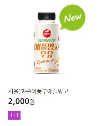 ★서울 과즙이풍부한(딸기우유, 애플망고우유) 1+1