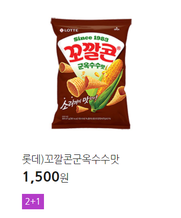 ★꼬깔콘(매콤달콤, 고소한맛, 군옥수수, 새우마요, 찰옥수수) 2+1 → 새우마요, 찰옥수수는 CU에서만 행사하는 듯