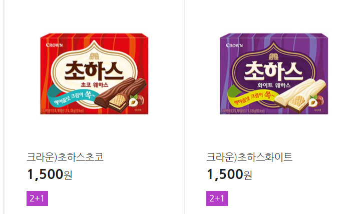 크라운 초하스(초코, 화이트) → 초코하임 화이트하임의 웨하스버전인듯. 궁금!
