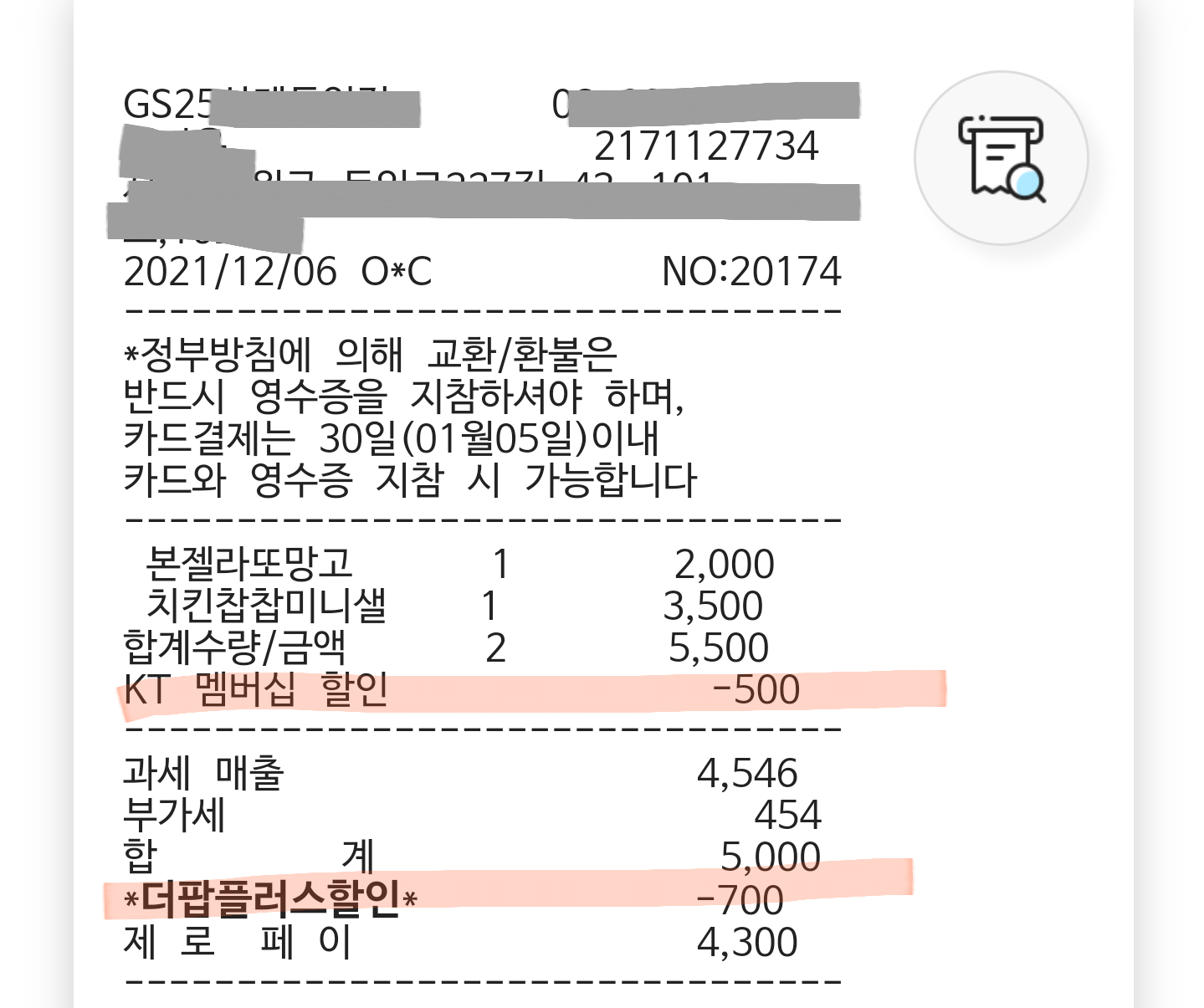 KT 멤버십 할인에 더해 더팝플러스 할인까지 총 1,200원 할인 받음!