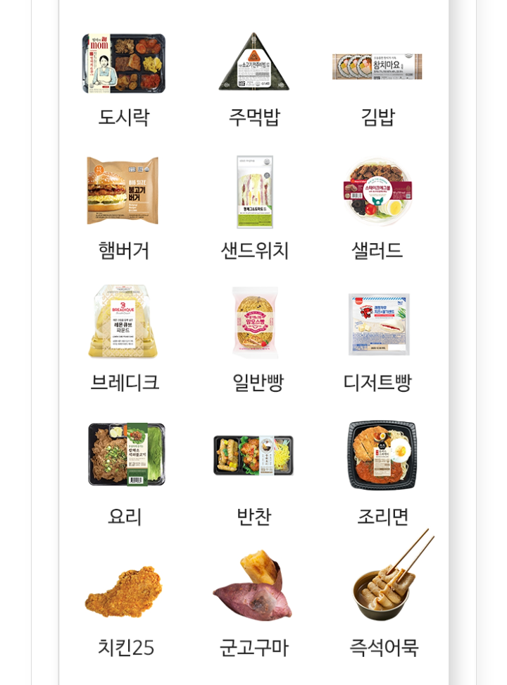 주먹밥, 김밥, 샌드위치, 빵 등 "식사"라고 부를 만한 것들이 다 할인된다,