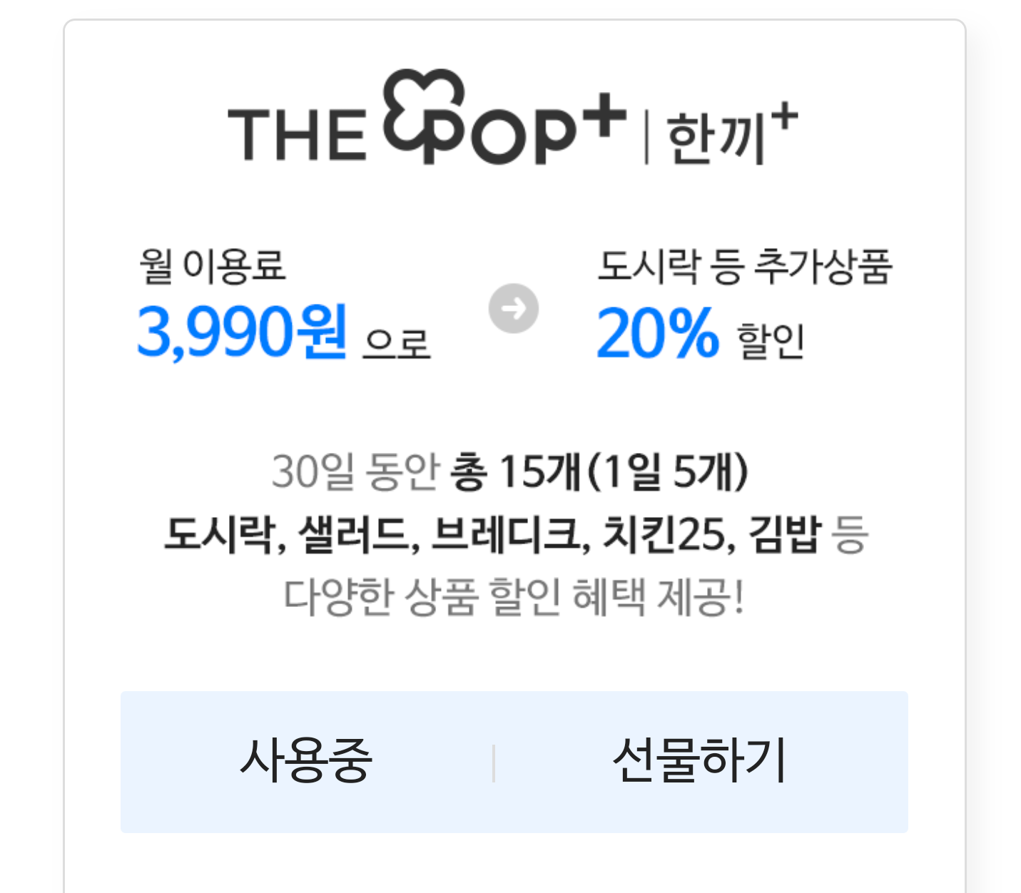네 가지 구독권 중에 내가 가입한 건 한끼플러스! 한끼+