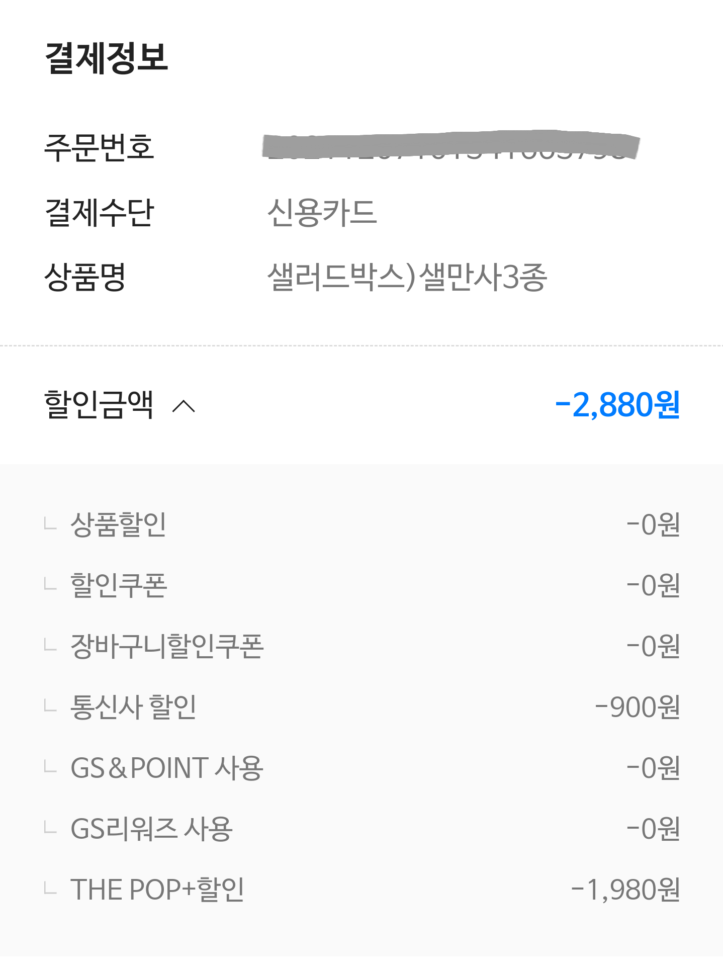 또 다른 날은 이렇게, 샐러드박스를 미리 주문해서 총 2,880원 할인받았다.
